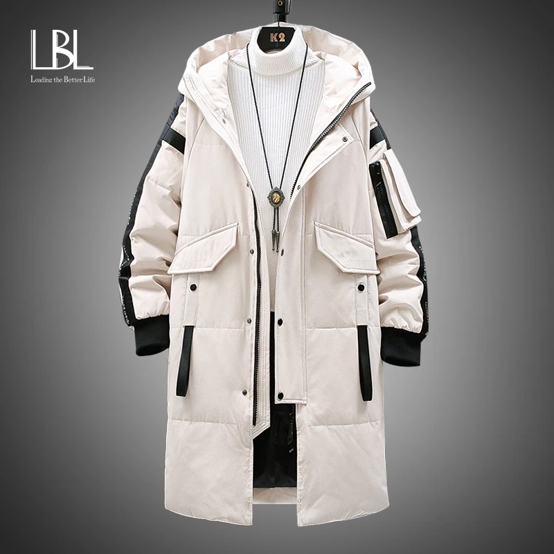 LBL 2021 Мужская Зимняя Повседневная Длинная пуховая куртка, Мужская высококачественная повседневная модная куртка-пуховик на утином пуху, Мужская Толстая ветровка