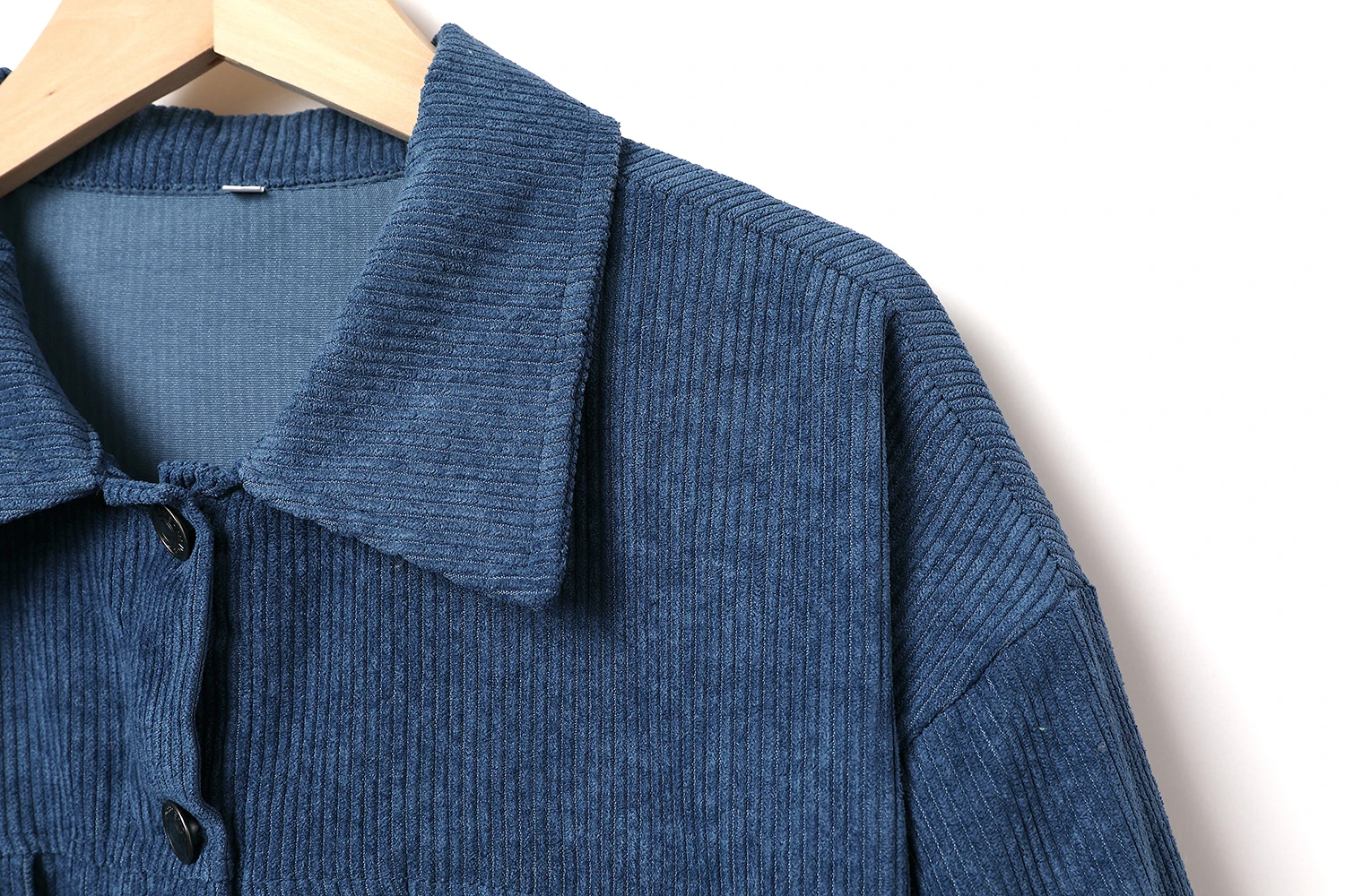 Женская Вельветовая куртка, Однотонная рубашка с отложным воротнико...