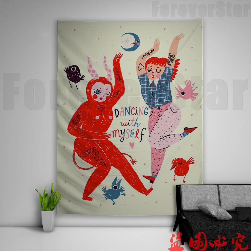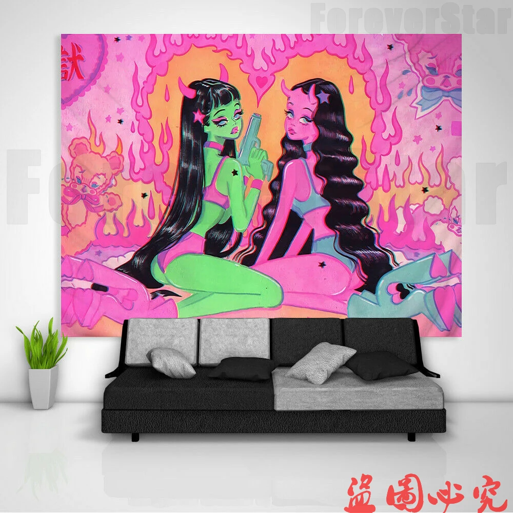 Милый женский настенный гобелен аниме милые девушки иллюстрации гобелены эстетическое искусство чехол для дивана