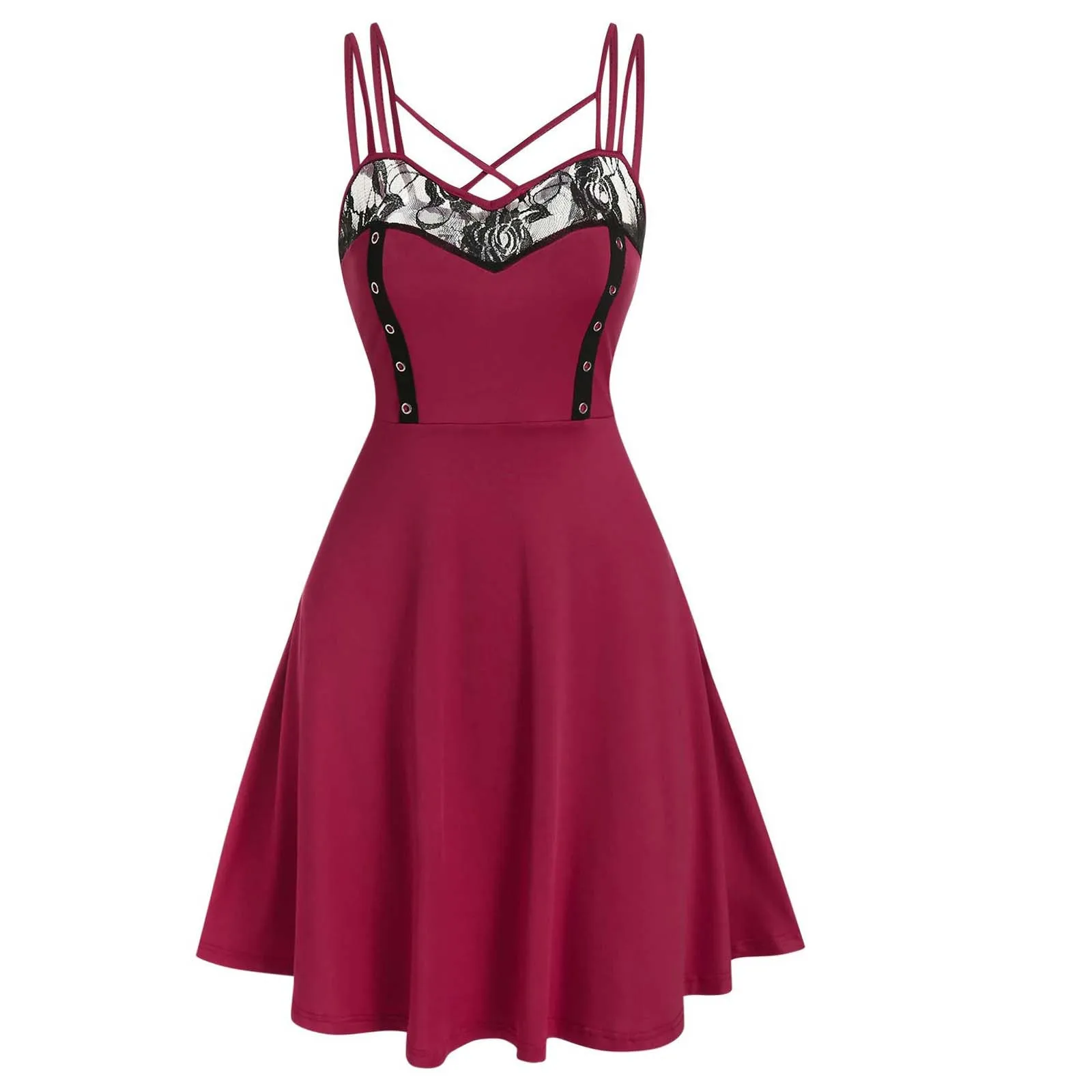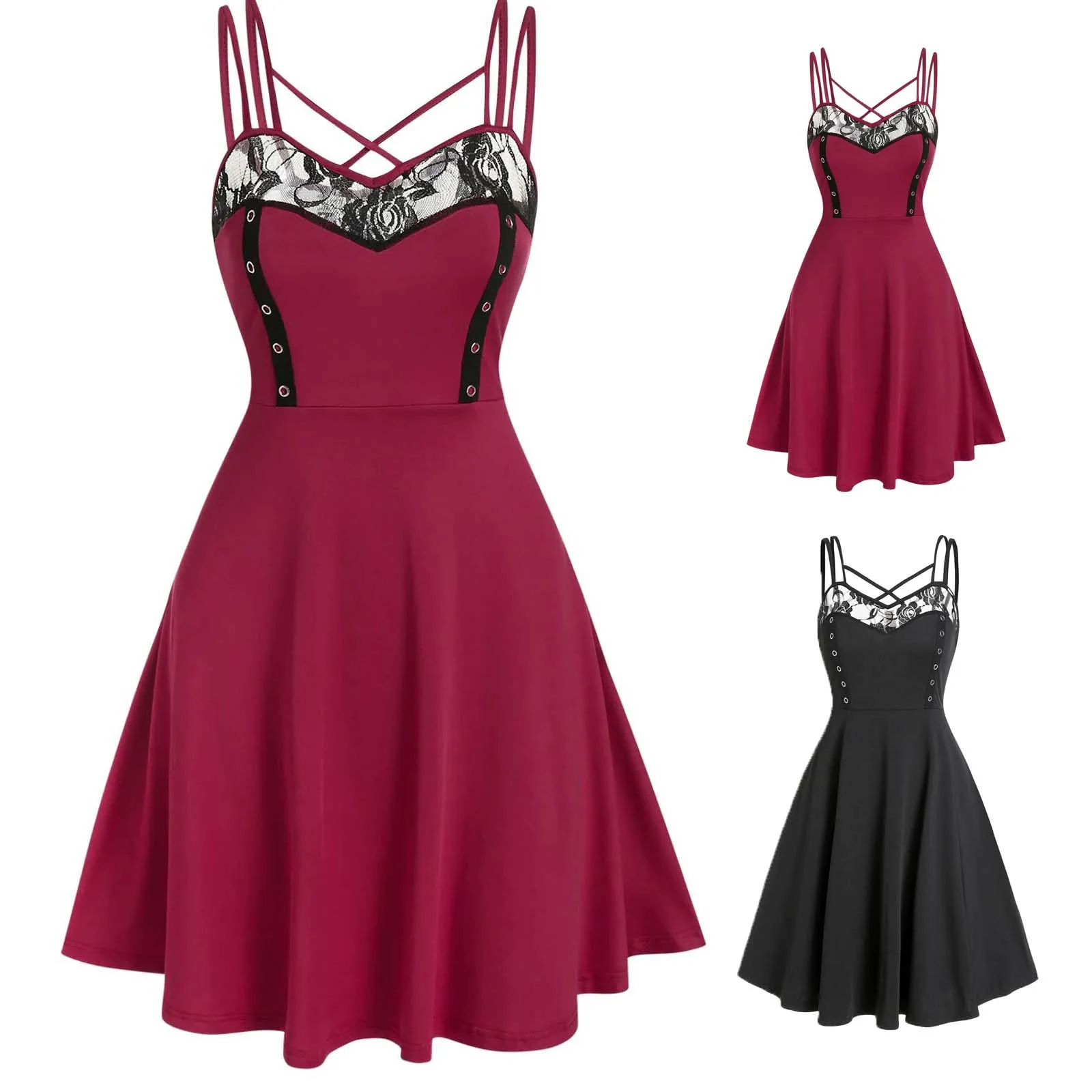 Женское платье в готическом стиле, повседневное элегантное однотонное платье-топ без рукавов с кружевным подолом, пикантное мини-платье в стиле панк для вечерние, модель #40, 2021