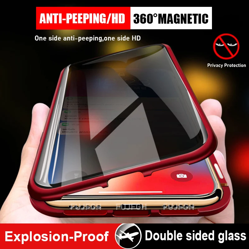 Features 2Double Side Glass Anti Peep Magnetic Phone Case
