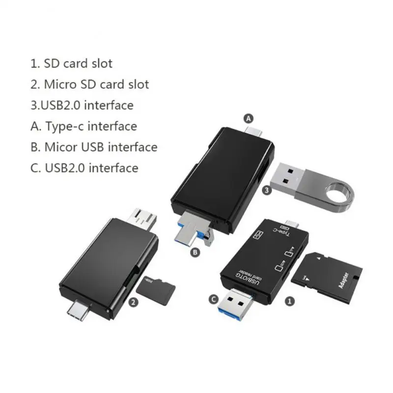 SD-кардридер USB C кардридер 3 в 1 USB 2,0 TF/Mirco-SD считыватель смарт-карт памяти Type C OTG флеш-накопитель кардридер адаптер