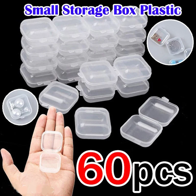 60 шт. пустые пластиковые прозрачные мини Пустые Квадратные маленькие коробки, контейнер для ювелирных украшений, затычек для ушей, красочный декоративный чехол для ногтевого дизайна с бриллиантами