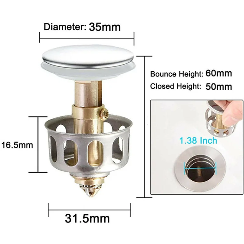 Легко установить, любой может установить всплывающее слив из-за его простой структуры, нет необходимости в инструментах, просто выньте старый и вставьте ядро отскока, чтобы завершить егоСпецификация: