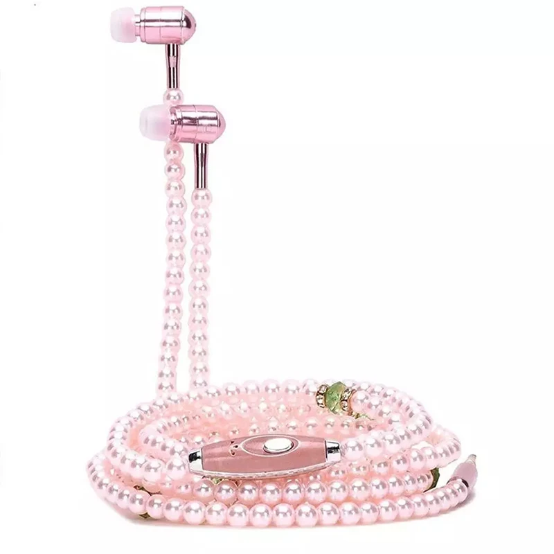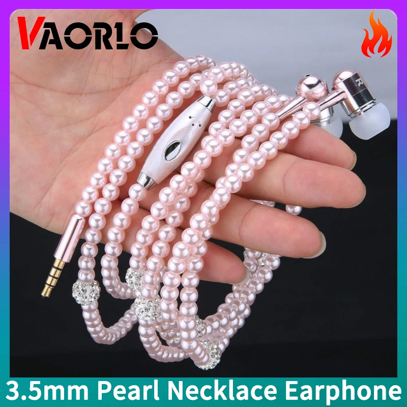 VAORLO жемчужное ожерелье с наушниками 3,5 мм в ухо розовое ожерелье со стразами ювелирные изделия бусы гарнитура с HD микрофоном для дня рождения девушки подарки