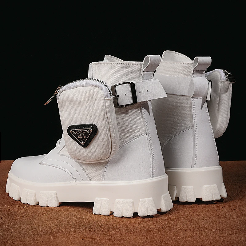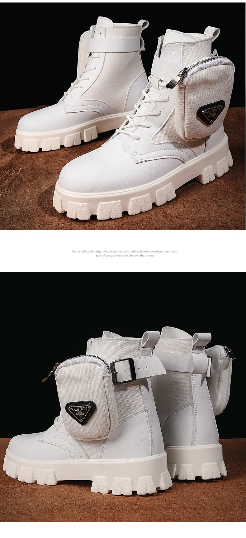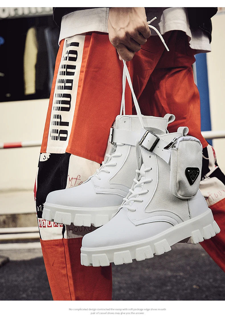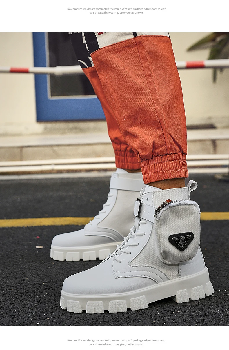 Мужские ботинки из натуральной кожи YEINSHAARS, черные или Белые Повседневные ботильоны с карманами, мотоциклетная обувь в стиле панк для зимы, 2019