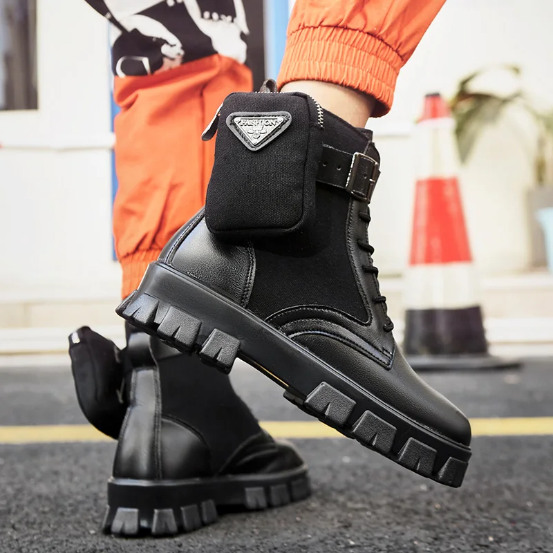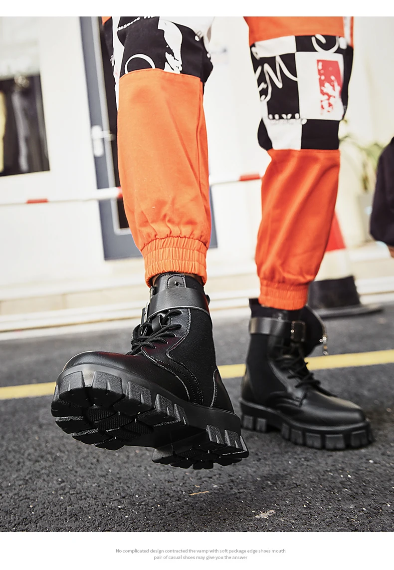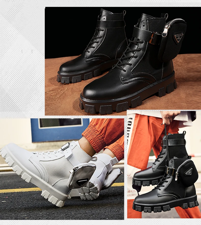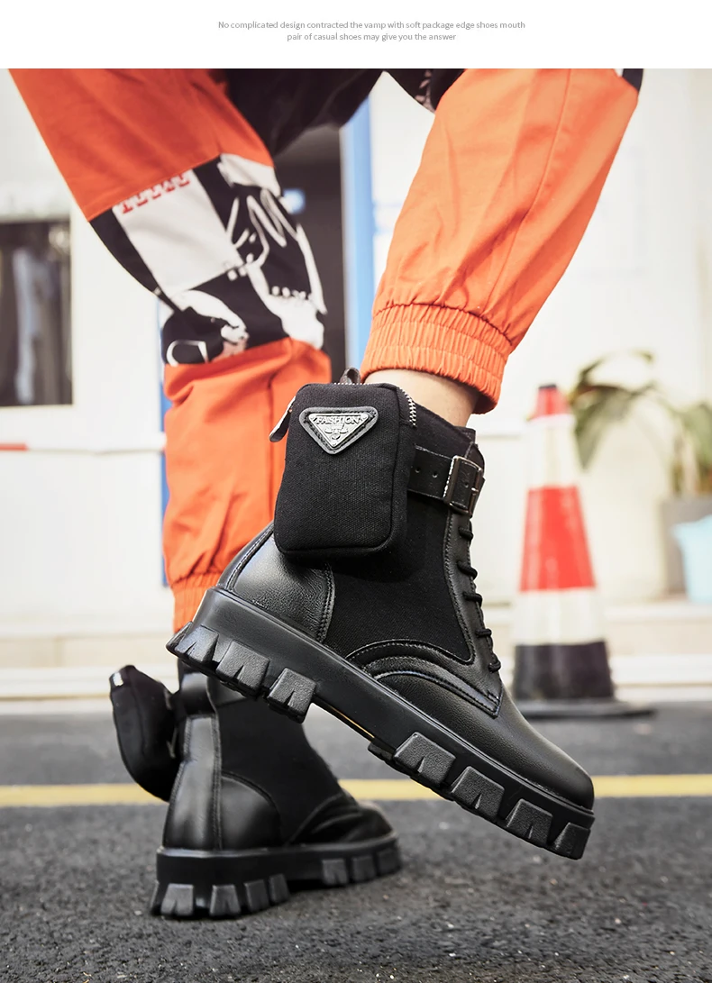 Мужские ботинки из натуральной кожи YEINSHAARS, черные или Белые Повседневные ботильоны с карманами, мотоциклетная обувь в стиле панк для зимы, 2019