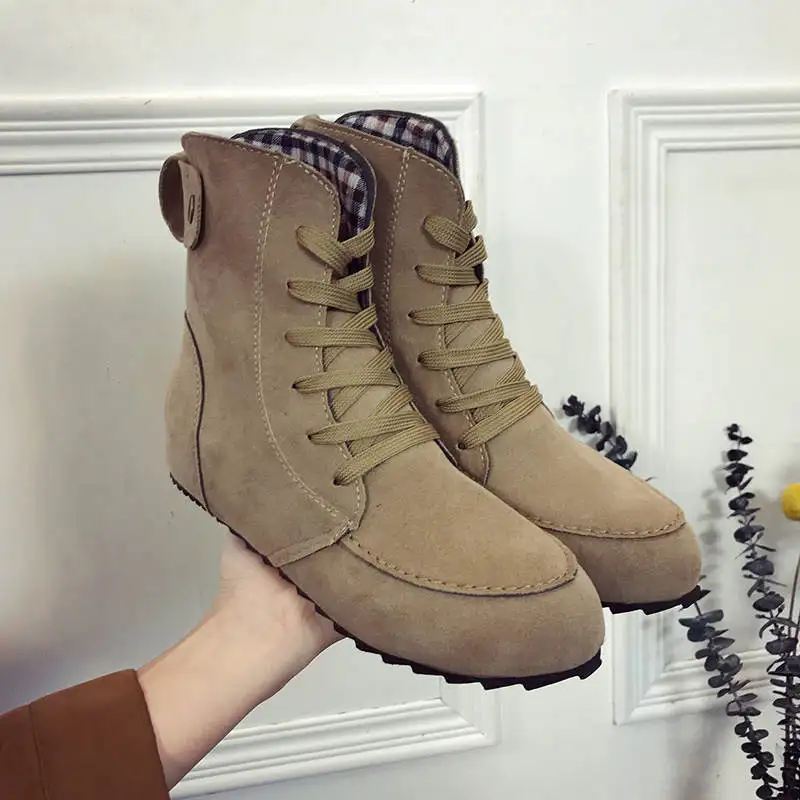 Женские ботильоны на плоской подошве, повседневные ботинки со шнуро...