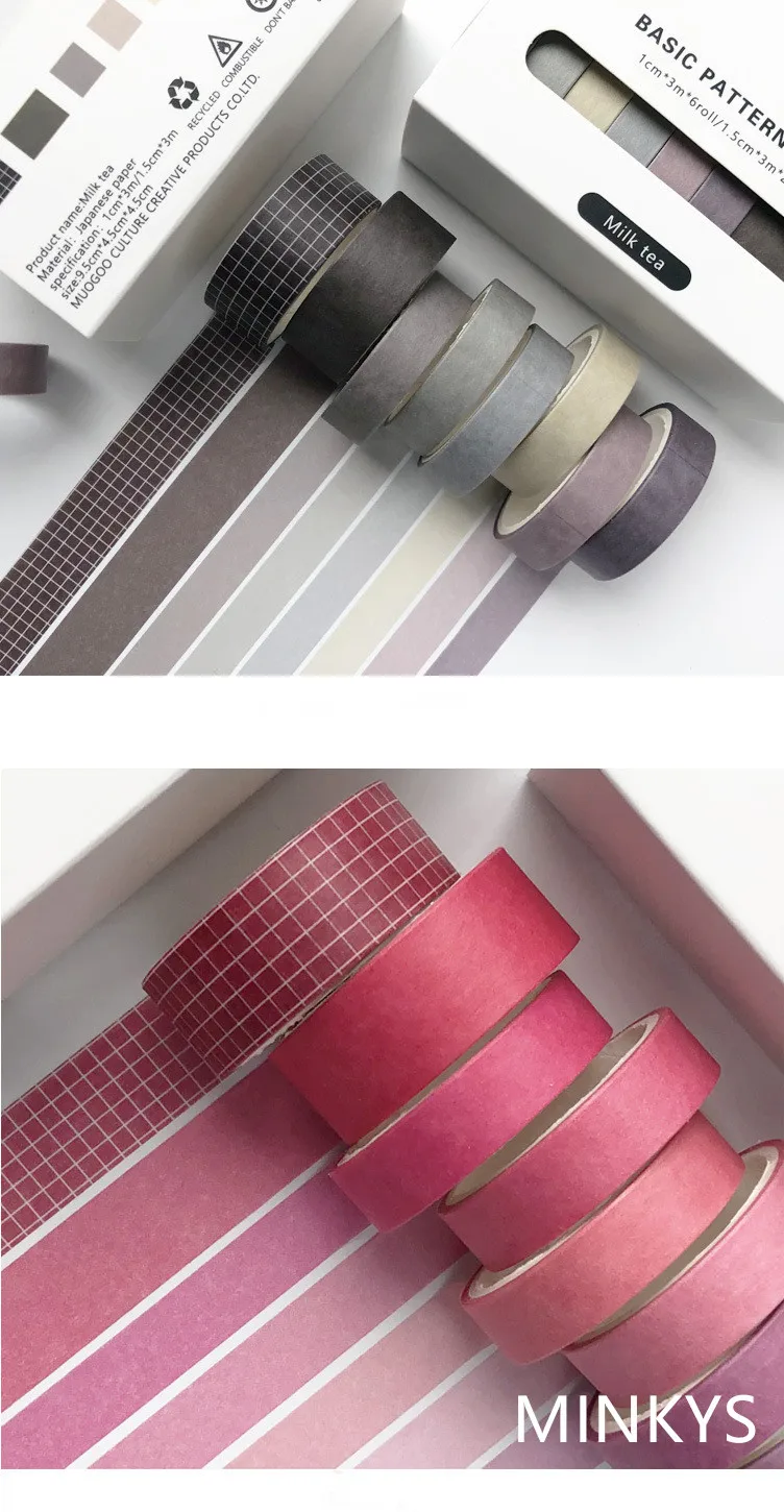 Милая ретро-лента MINKYS, 8 искусственных элементов, рисовой рисунок, скрапбукинг, однотонная декоративная бумажная Маскировочная лента, школьные канцелярские принадлежности