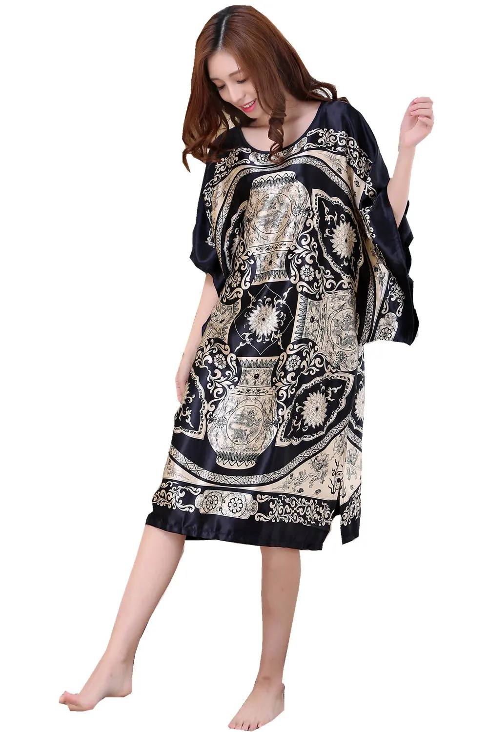 Пикантный женский шелковый халат из вискозы, ночная рубашка, летняя повседневная домашняя одежда с принтом, свободная одежда для сна, женский халат