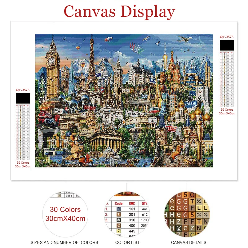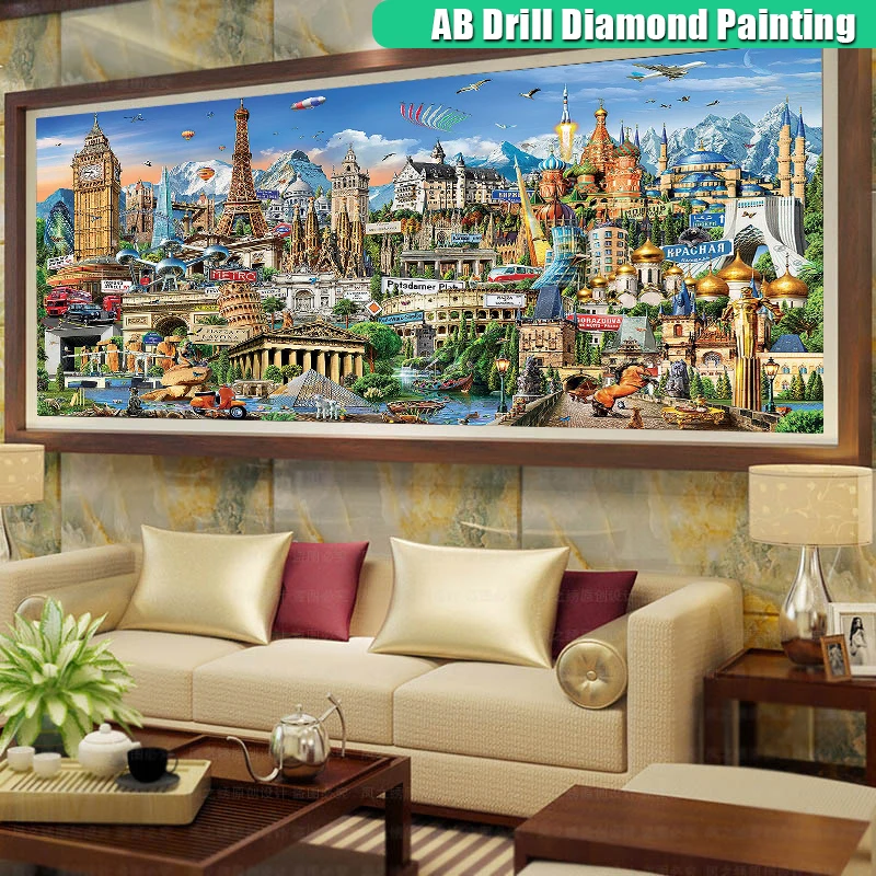 Алмазная живопись 5D вид города, живопись большого размера, ручная ...