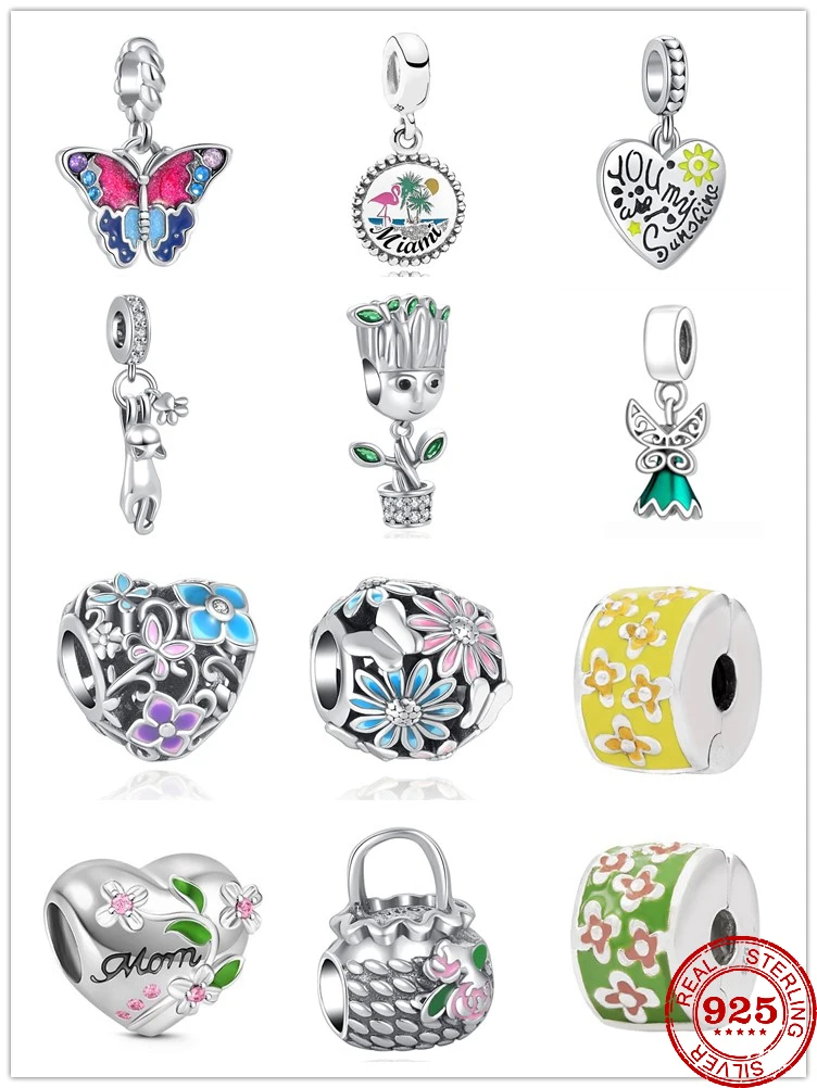 Бусины-шармы Кот и корзина из серебра 925 пробы