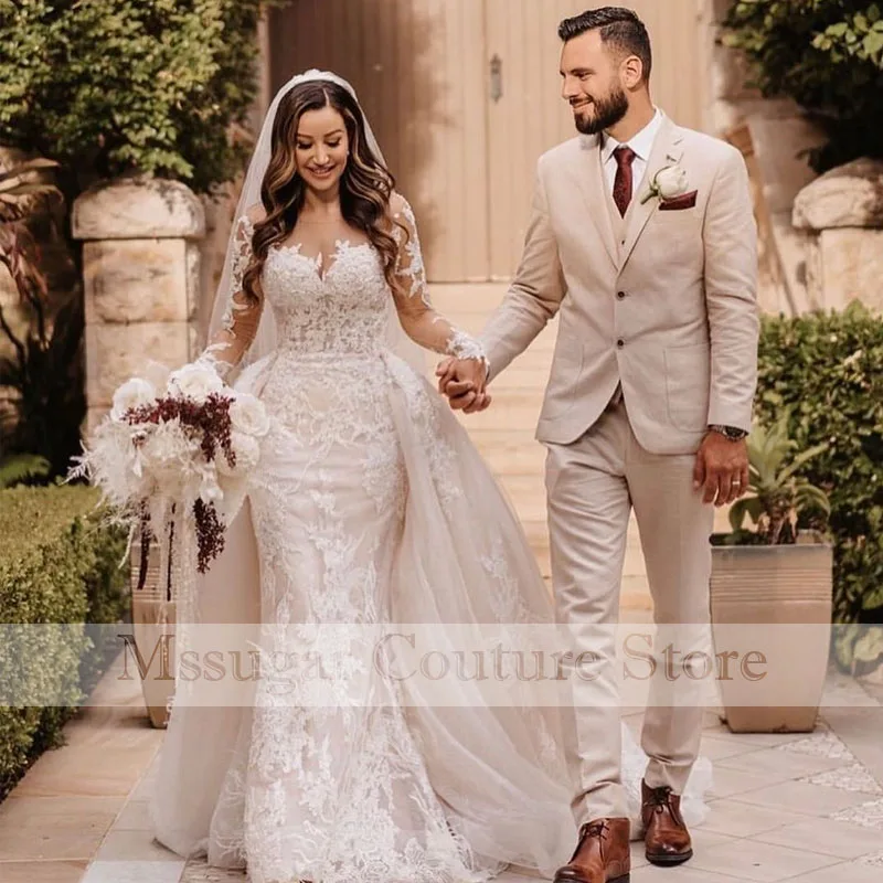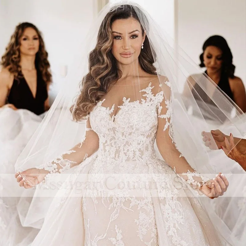 Кружевное свадебное платье с длинным рукавом, со съемным шлейфом