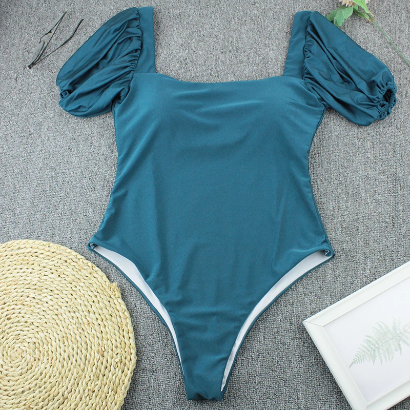 2021 слитный купальник с пышными рукавами, женское сексуальное боди, однотонный монокини с открытой спиной, купальник, летний купальный костюм