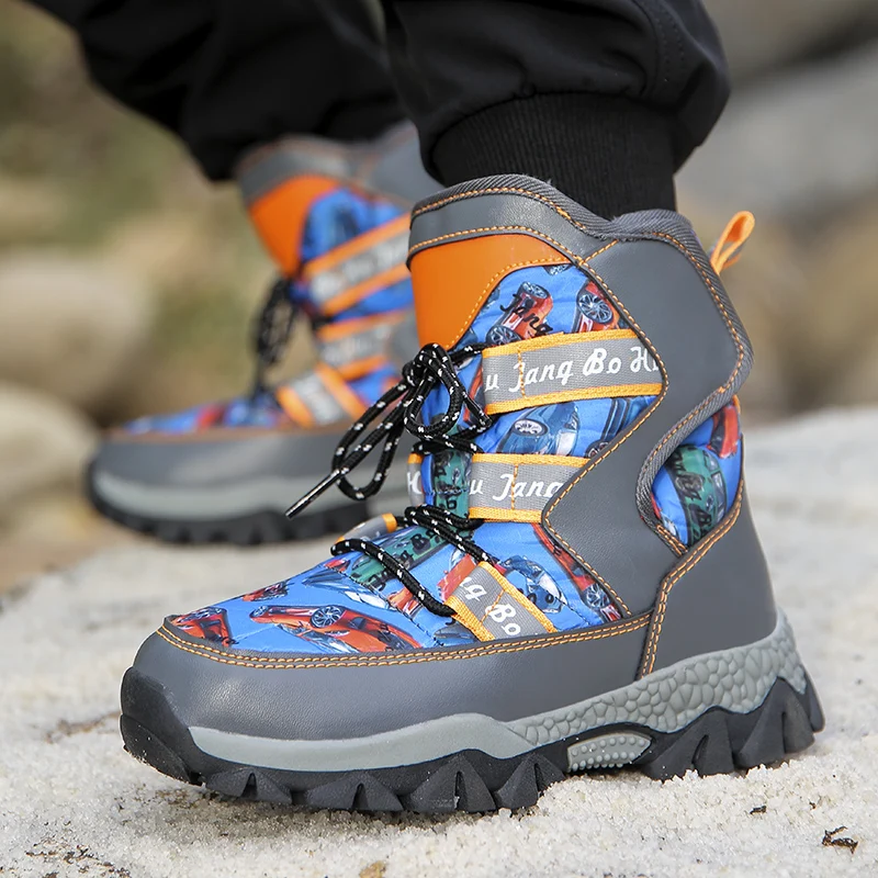 Зимние теплые меховые сапоги для мальчиков и девочек 5-12 + лет, меховые сапоги с шипами, нескользящая кожаная Осенняя Водонепроницаемая детская повседневная обувь
