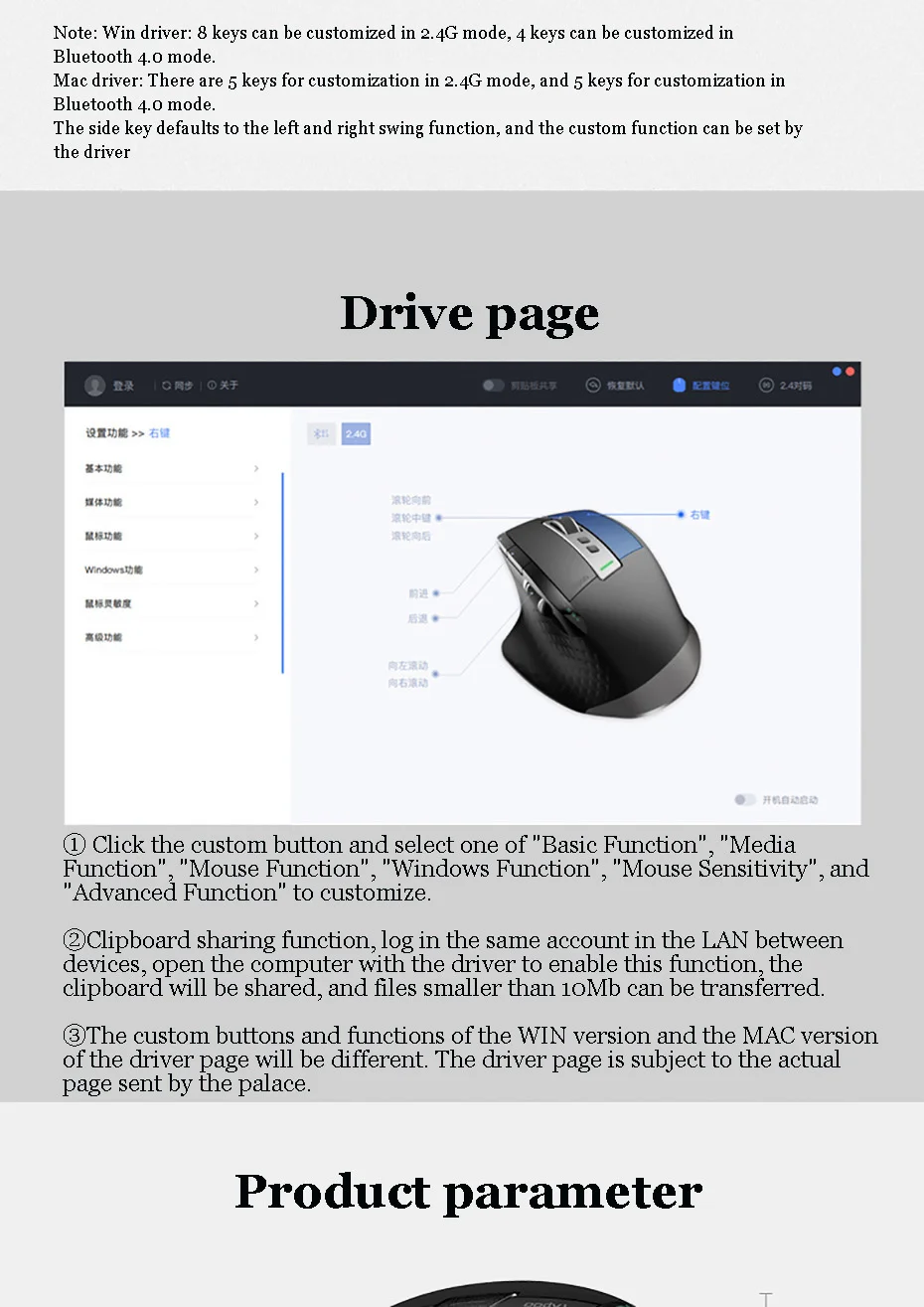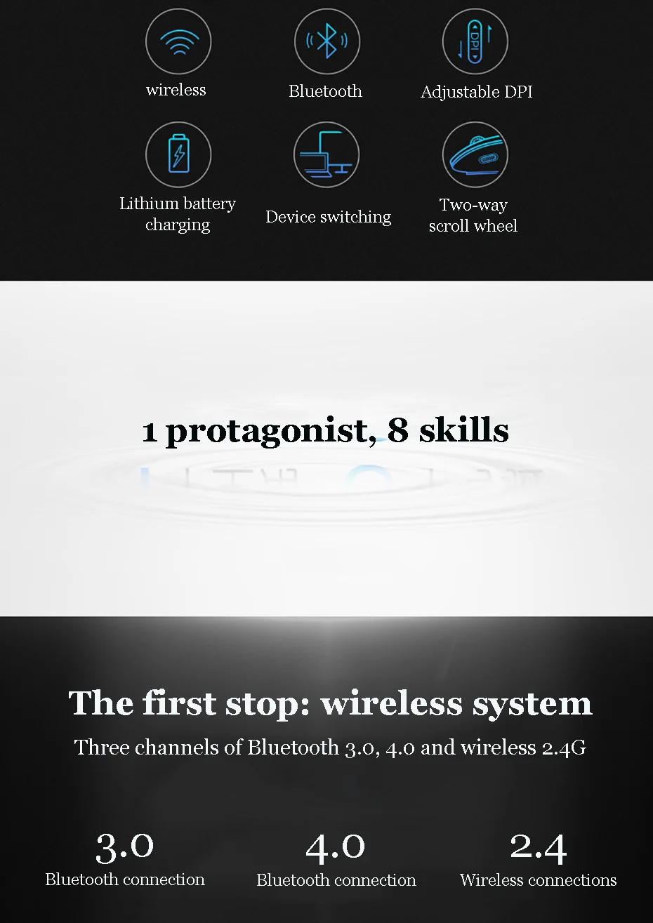 Новейшая перезаряжаемая многорежимная беспроводная мышь 3200DPI, пе...