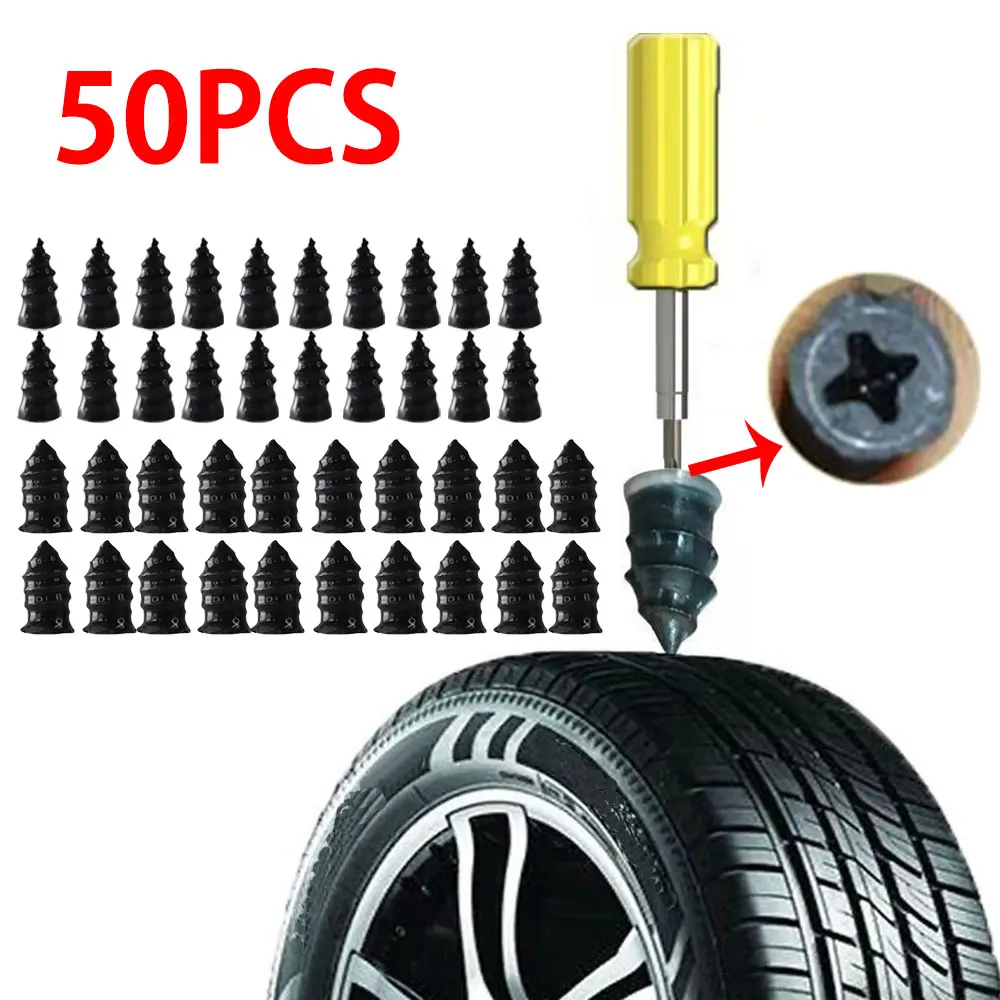 Комплект мини-гвоздей для вакуумного ремонта шин, комплект из 50 предметов для мотоцикла, автомобиля, скутера, переносные резиновые проколы для бескамерных шин, патчи для винтов, набор инструментов