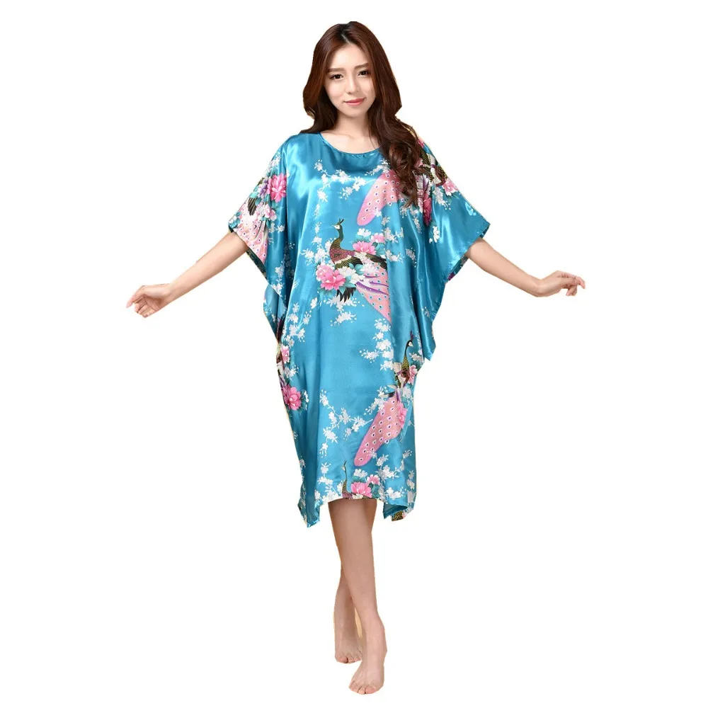 Размера плюс Летняя женская из искусственного шелка ночной халат Че...