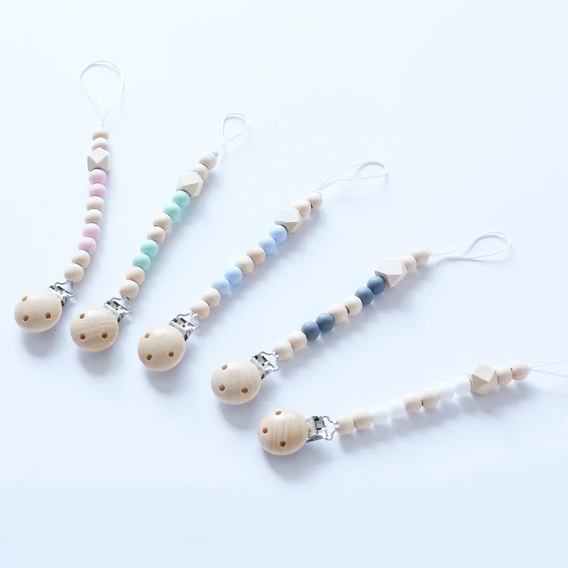 Деревянная игрушка для детей 0-12 месяцев, зажим для соски, держатель для цепочки, деревянные бусины, прорезыватель, игрушки для детей, жевательная погремушка, мобильная игрушка для новорожденных, подарки