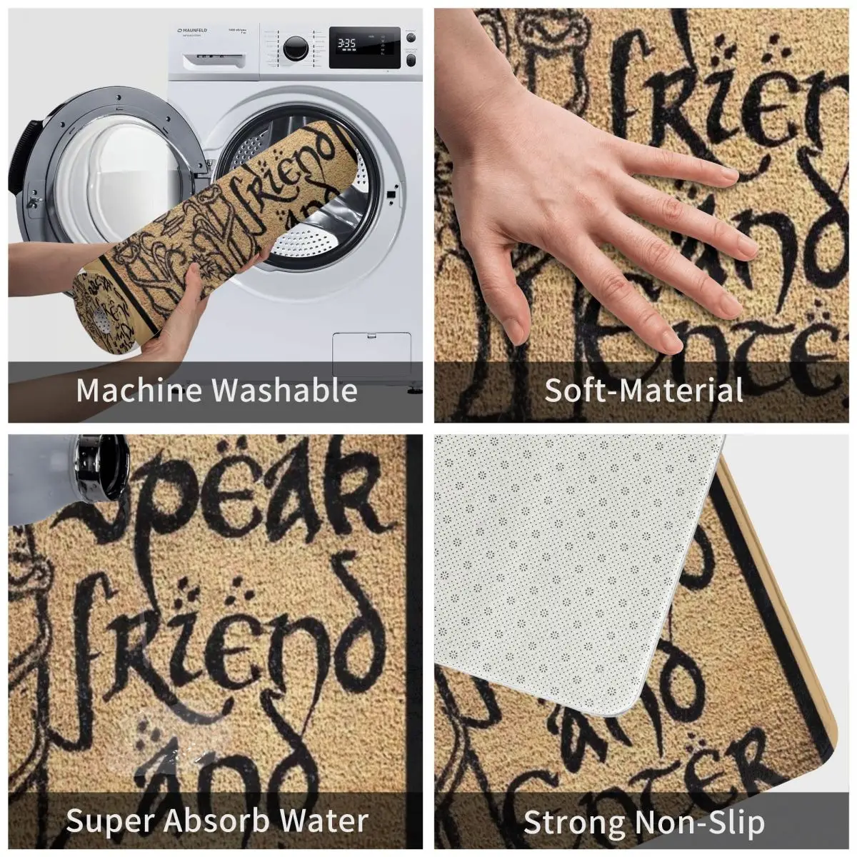 Напольный коврик из полиэстера, нескользящий, моющийся