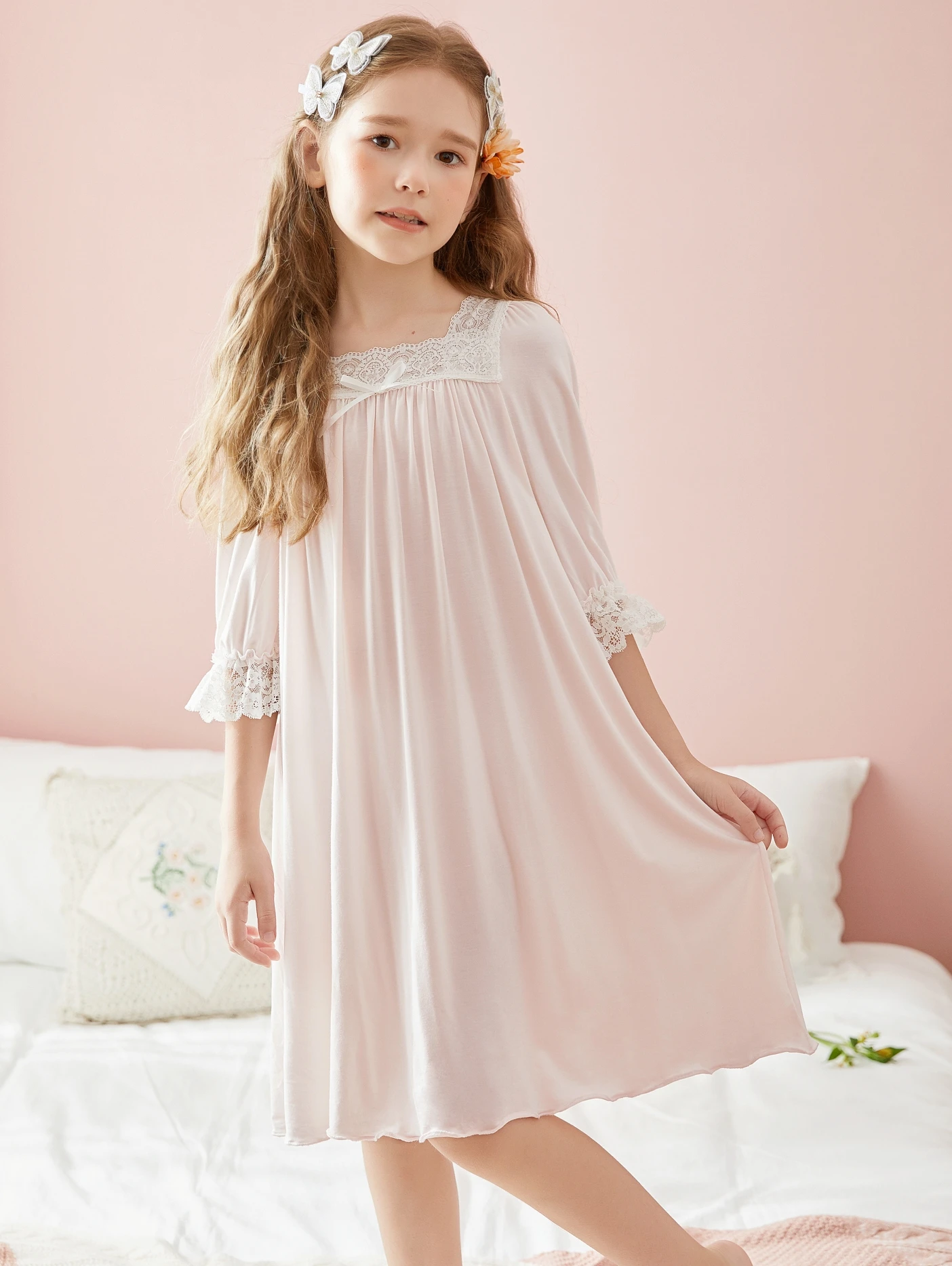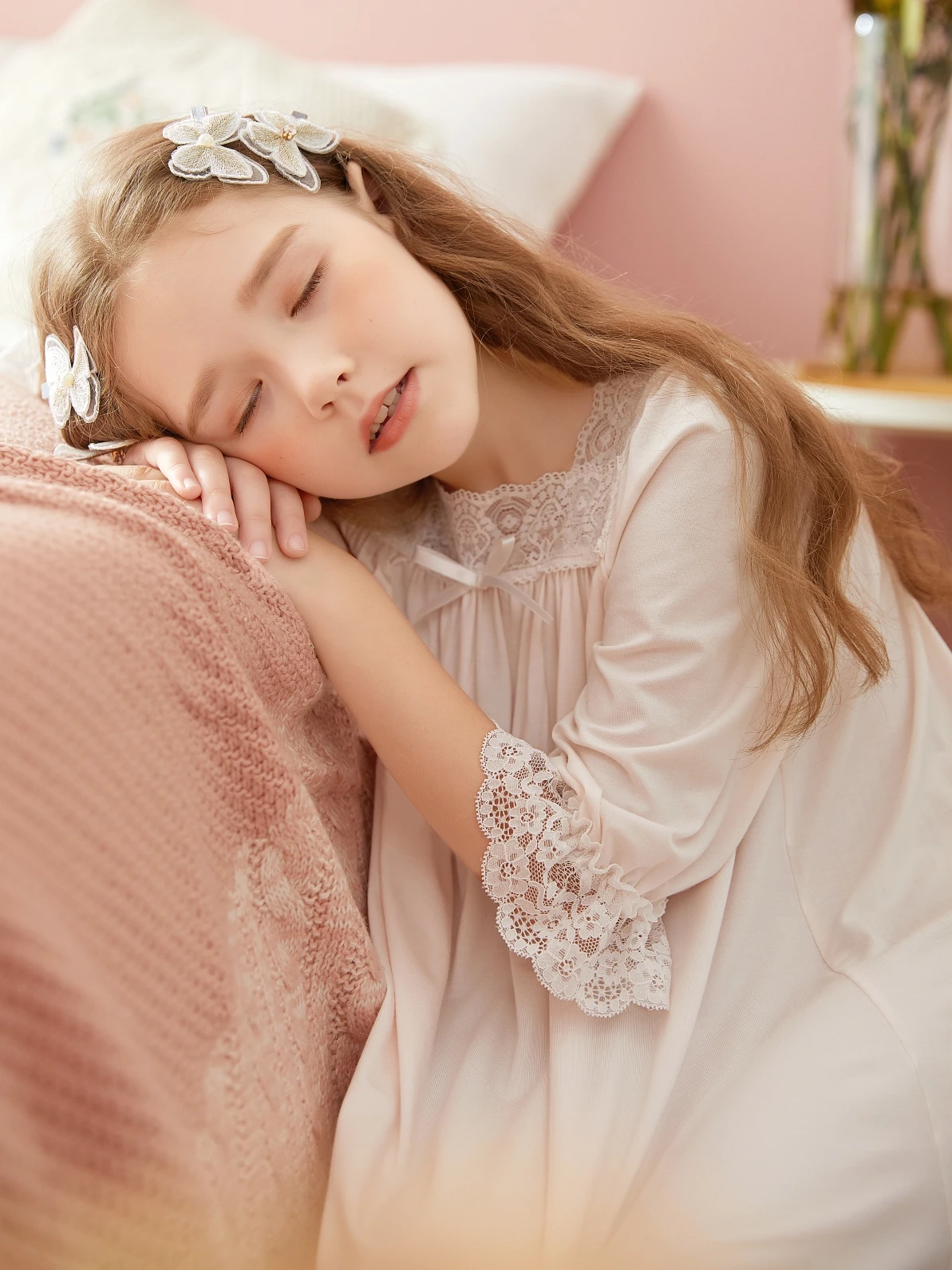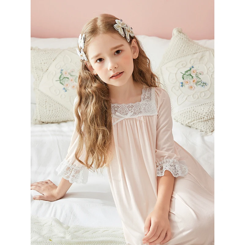 Детские стильные винтажные кружевные ночные рубашки в стиле принцессы