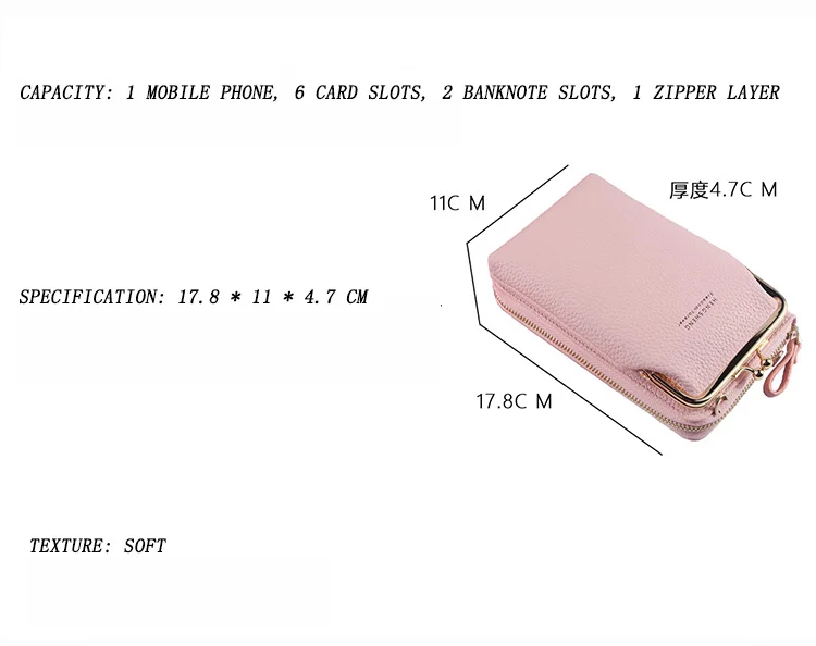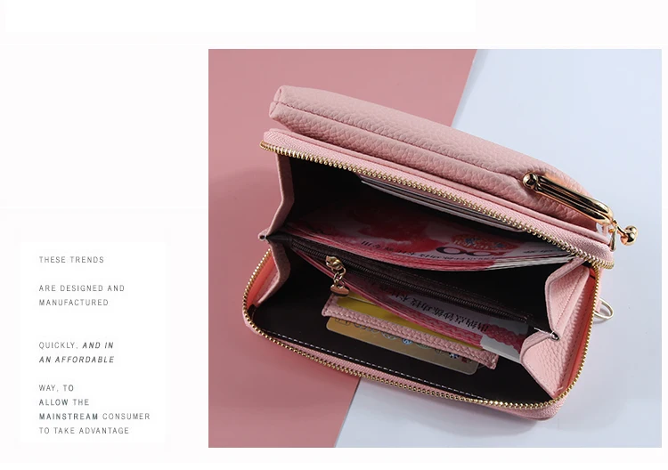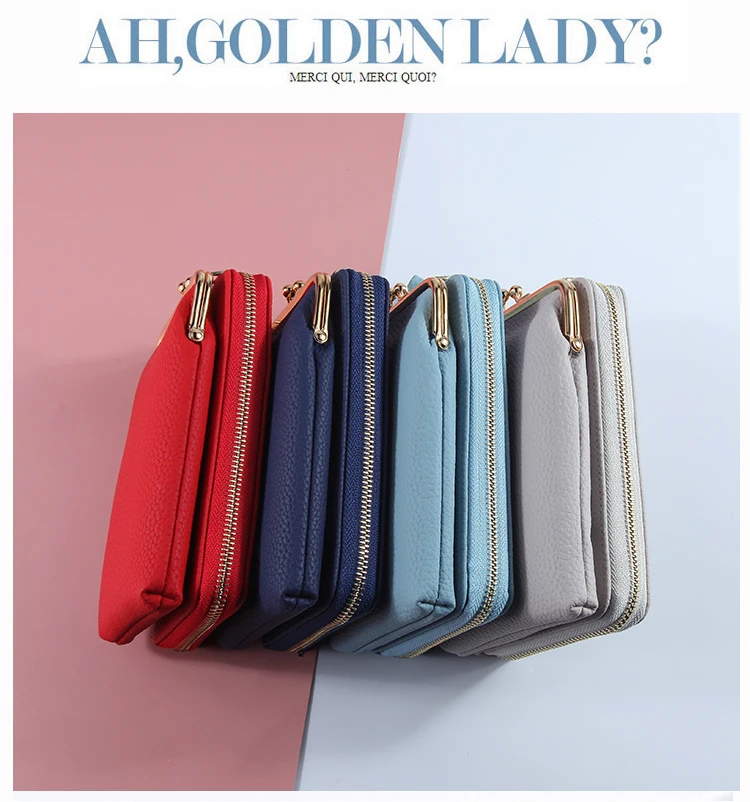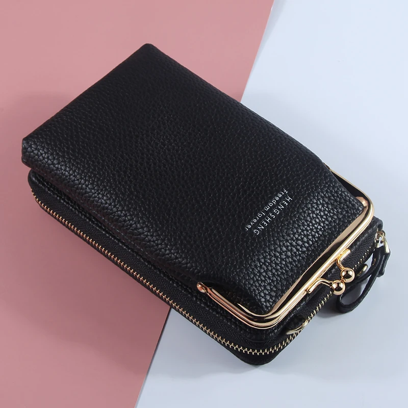 Женский модный вместительный кожаный кошелек с держателем для карт, милый Футляр для ключей на молнии, маленький мессенджер через плечо для телефона, сумки через плечо