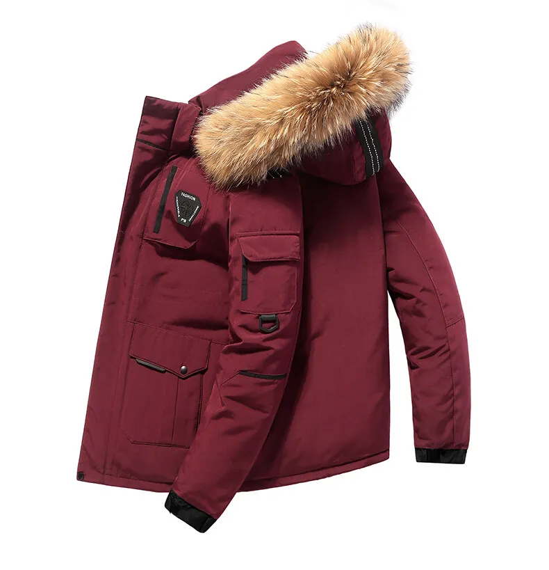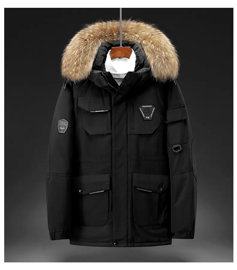 Парка мужская зимняя с капюшоном и меховым воротником, на пуху