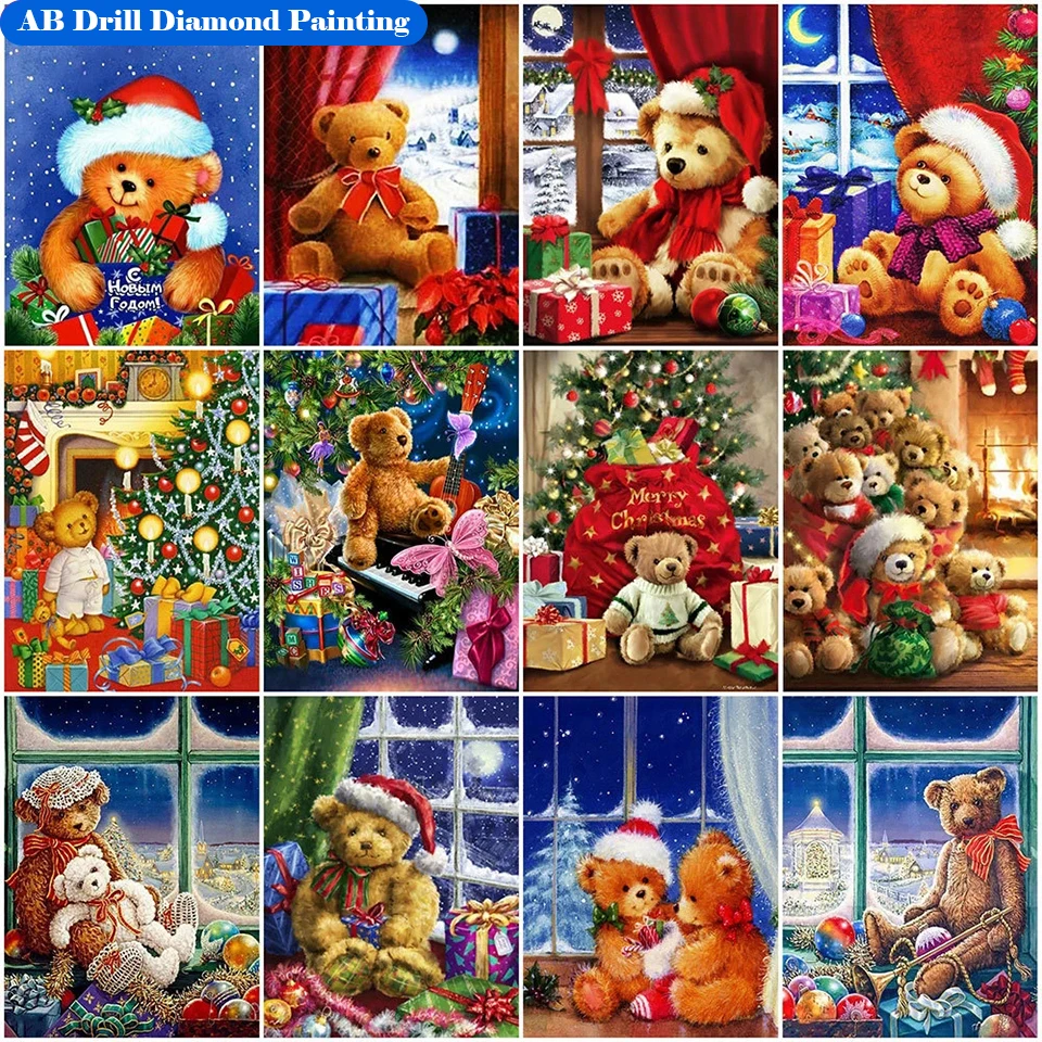 Алмазная живопись AB, Рождественский медведь, вышивка крестиком 5D, алмазная вышивка своими руками, мультяшная полноразмернаяКруглая Мозаика, стразы картины