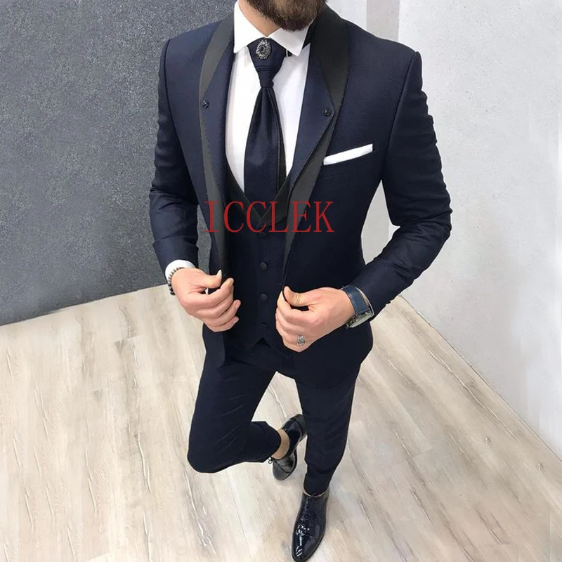 Костюм мужской темно-синий по индивидуальному заказу, приталенный Свадебный костюм, костюм для мужчин, смокинг для жениха, 3 предмета, Лучший мужской костюм для жениха, мужской костюм Terno