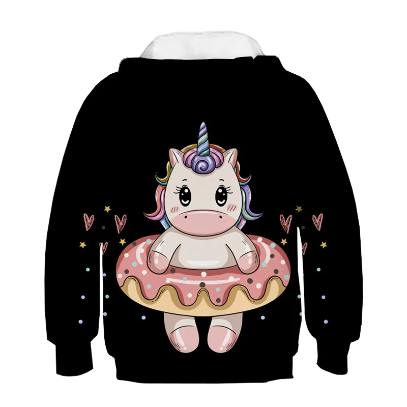 Осенне-зимний детский 3D свитер для детей среднего возраста студентов Повседневный свободный мультяшный картина с единорогом пуловер с капюшоном