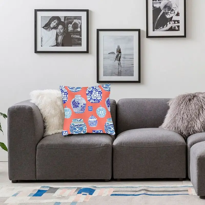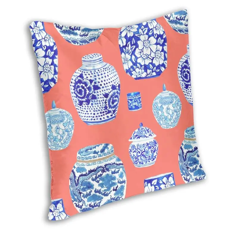 Китайская фарфоровая банка имбиря, коллекция в неоновой персиковой цветовой гамме, чехол для спальни, украшение, плитка Delft, чехол для диванной подушки