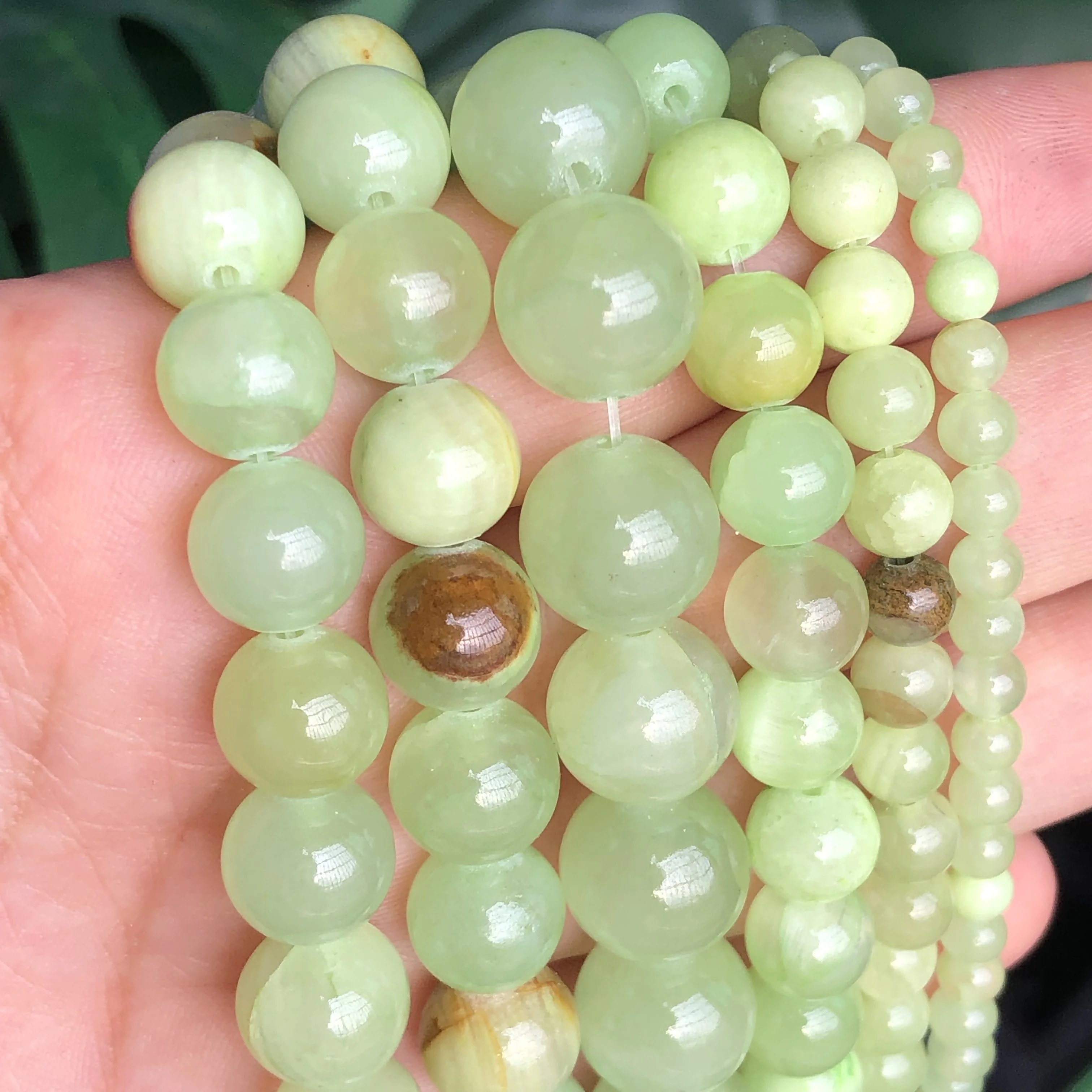 Натуральный зеленый нефрит, камень халцедон, круглые свободные разделительные кровати для изготовления ювелирных изделий сделай сам, женское ожерелье, браслет 681012 мм