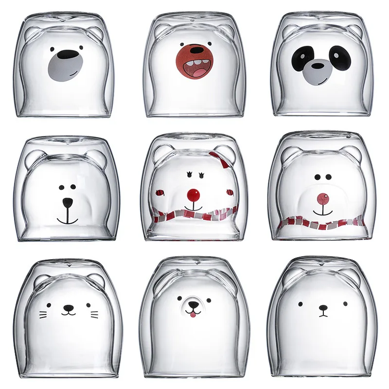 Стеклянные кружки, стеклянная кружка с двойными стенками, двухслойная стеклянная кружка с изображением медведя, кошки, животного, кофейная чашка, Рождественская кружка, милый чайный, молочный
