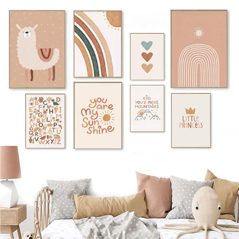 Альпака солнце Радуга Алфавит ABC настенная живопись холст скандинавские плакаты и принты настенные картинки для детской комнаты декор для спальни