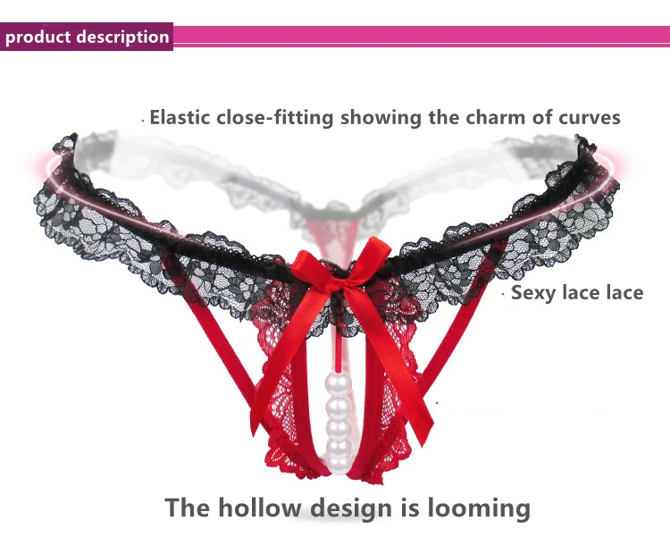 Кружевные женские стринги, сексуальные трусики танга с жемчужинами ...