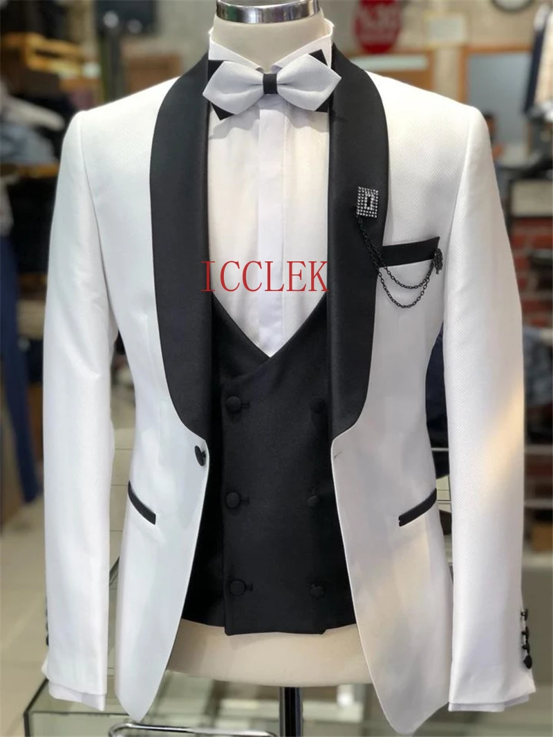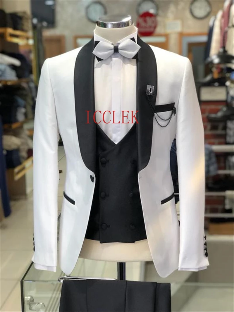 Мужские деловые костюмы из 3 предметов, Белые Повседневные смокинги...