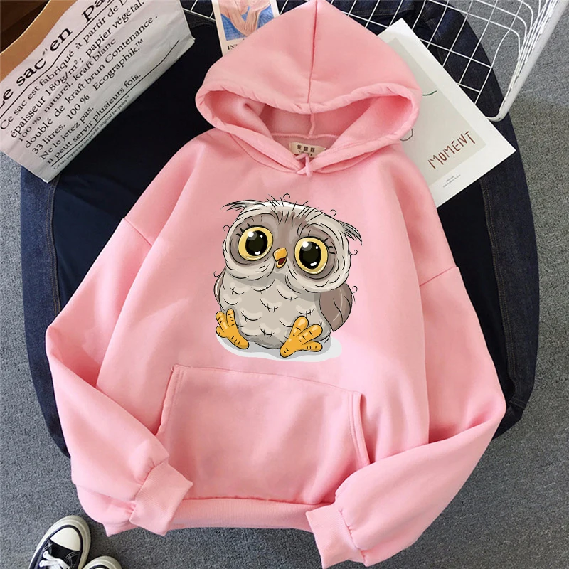 Толстовки с аниме Harajuku с принтом совы, Женская толстовка, уличная одежда, Женская модная зимняя теплая толстовка, пальто, кавайная женская одежда