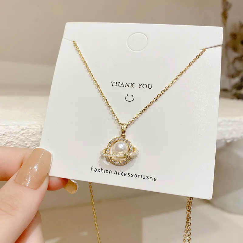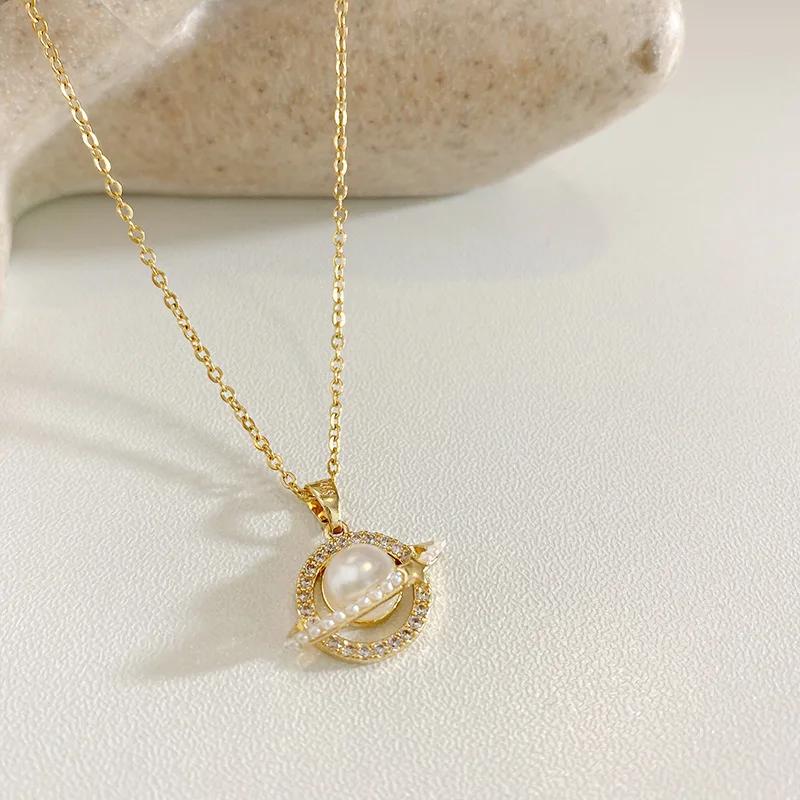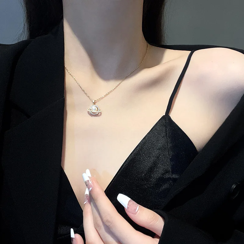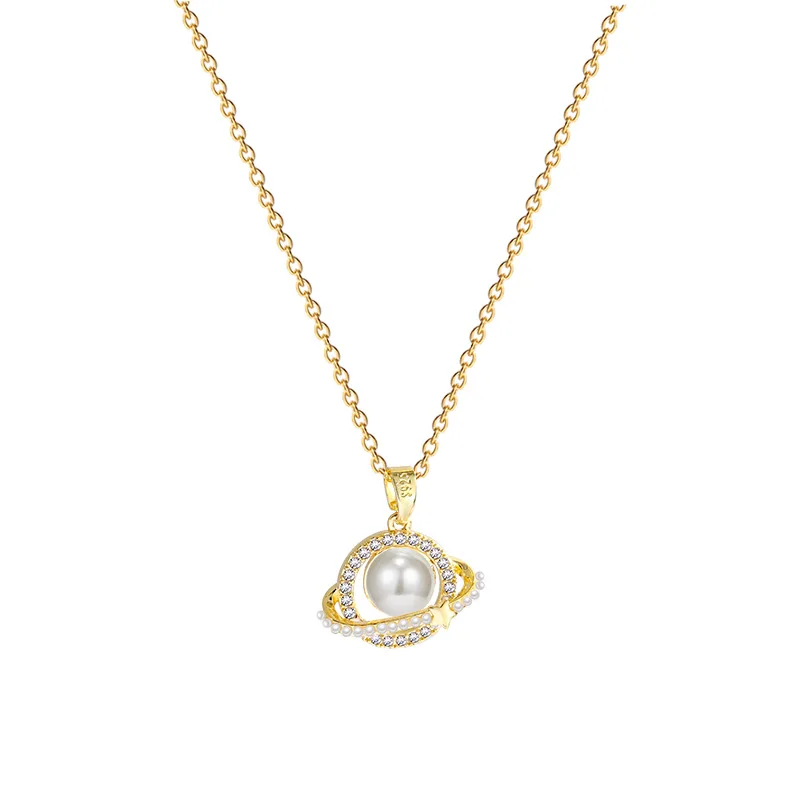 Ожерелье KAPLAN из нержавеющей стали в стиле панк с планетами и жемчугом женское, цепочка с кулоном в стиле хип-хоп из нержавеющей стали
