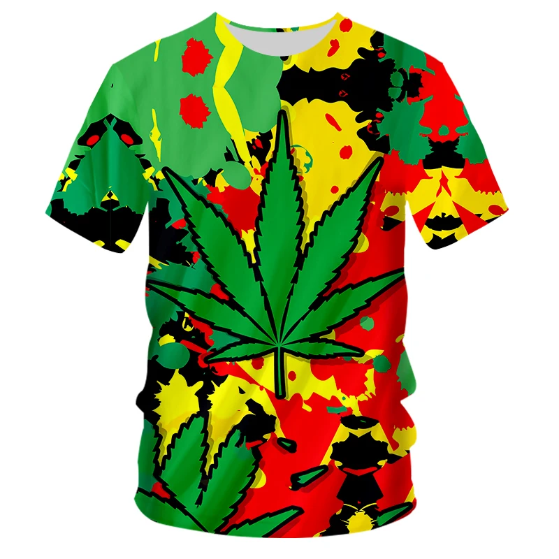 Футболка Harajuku с коротким рукавом, уличный пуловер с 3D-принтом зеленых листьев конопли, шелка, табака, круглый вырез, лето
