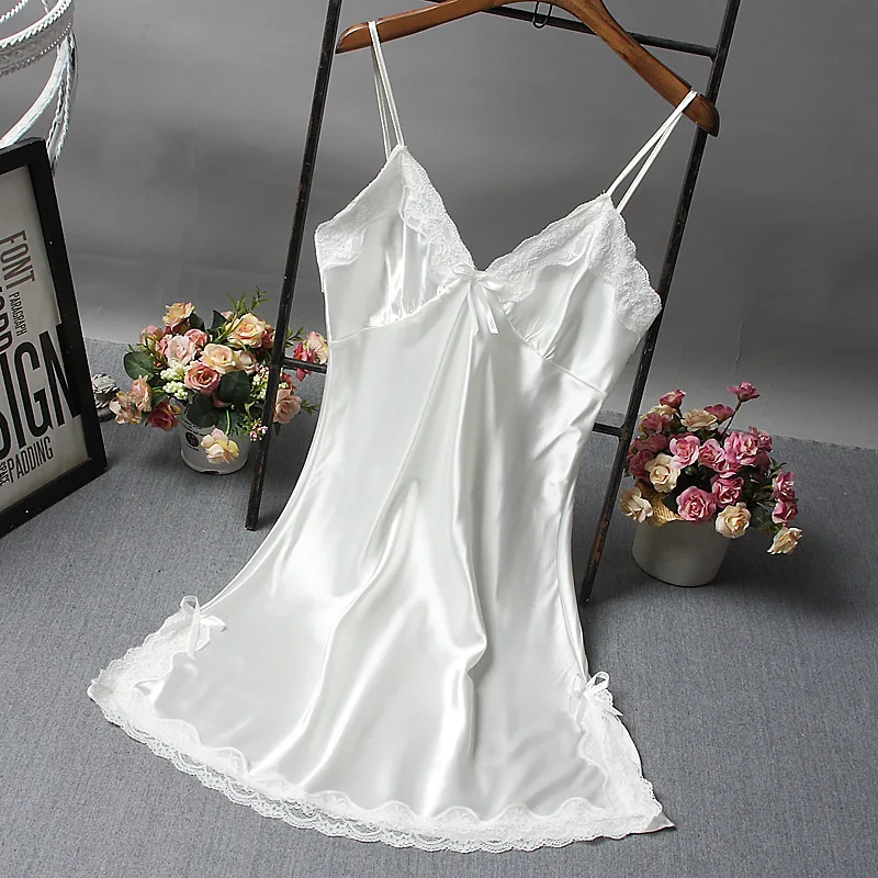 Домашняя сексуальная пижама имитация шелковых дам больших размеров ночная рубашка из шелка с v-образным вырезом и кружевными подтяжками удобная домашняя одежда оптом