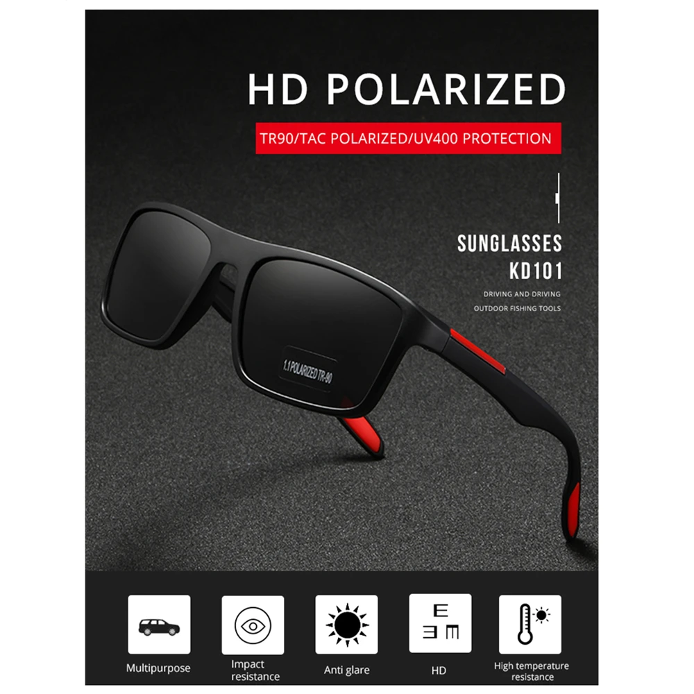 Мужские солнцезащитные очки Kdeam, прямоугольные ультралегкие поляризационные очки для рыбалки и спорта на открытом воздухе, очки для вождения UV400