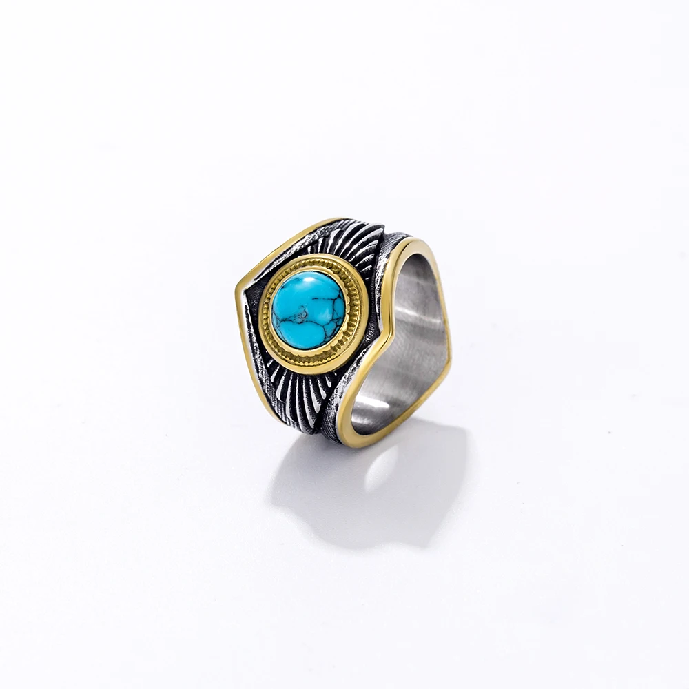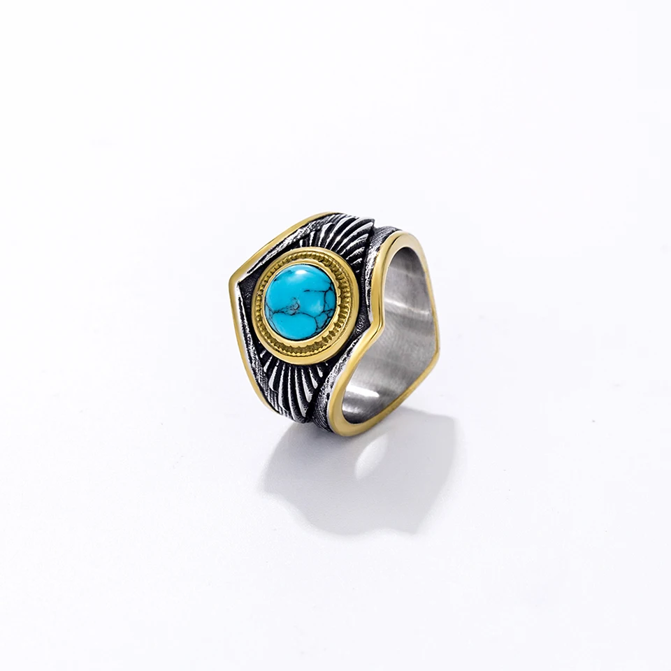 Кольцо из нержавеющей стали золотого цвета с камнем, модное женское кольцо небесно-голубого цвета с титановым шармом, женское и мужское ювелирное изделие для вечерние, мужской подарок