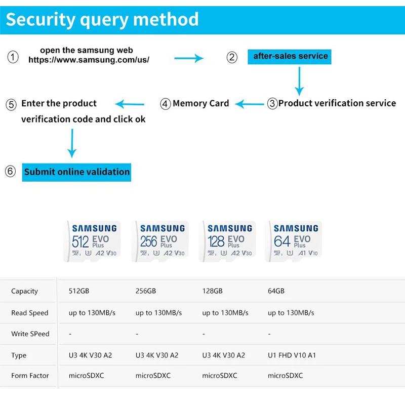 Оригинальная карта памяти SAMSUNG EVO PLUS, 128 ГБ, 256 ГБ, 512 ГБ, A2 V30 U3, карта TF, 64 ГБ, A1 V10 U1, скорость передачи данных до 130 МБ, карта MicroSD