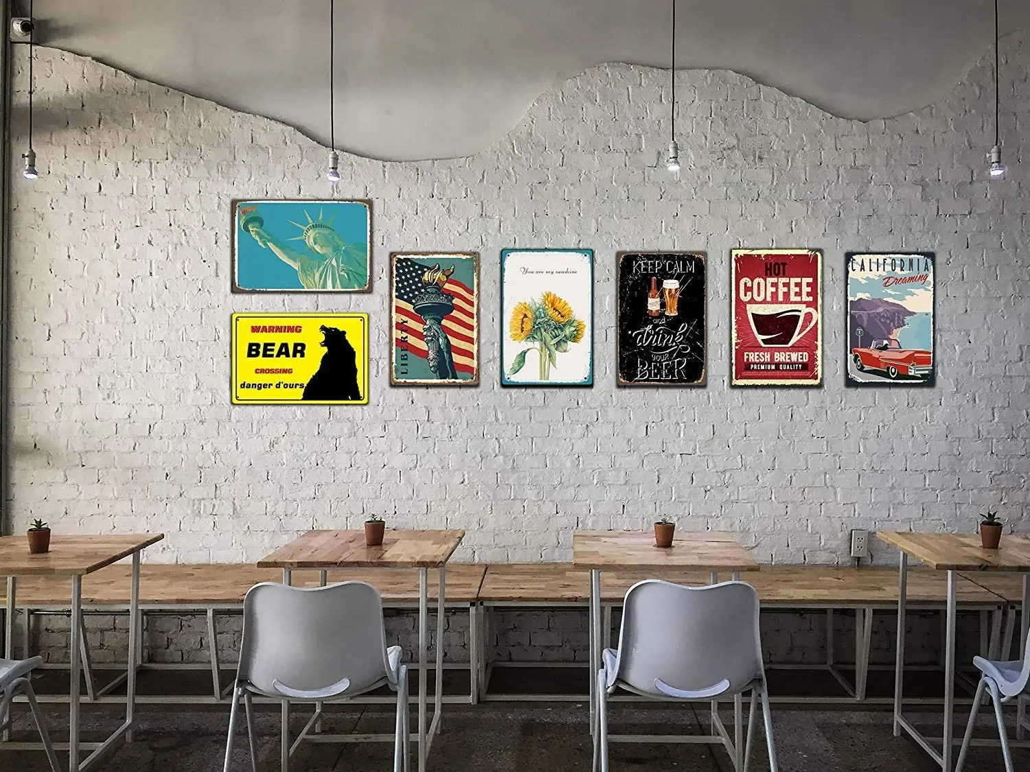 Винтажная декоративная картина с жестяным знаком изготовлена со сложенными краями для обеспечения безопасности и стабильности. Эти ретро Коллекционные оловянные знаки являются веселым и привлекательным украшением для вашего дома, офиса, бара, ресторана, общежития, гаража, кафе, столовой, ванной кухни, фермерского дома, отеля, спальни, клубов.