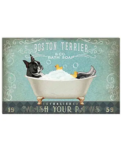 Жестяной знак Бостон-терьер, постер для ванной комнаты, уличный гараж, семейный кафе, бар, ферма, декор для двери ванной комнаты, ретро налет