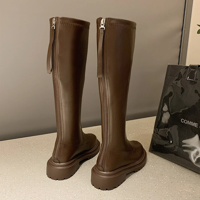 Женские Длинные брендовые сапоги до колена в стиле панк, роскошная обувь Челси на массивной платформе, женские сапоги на молнии с круглым носком