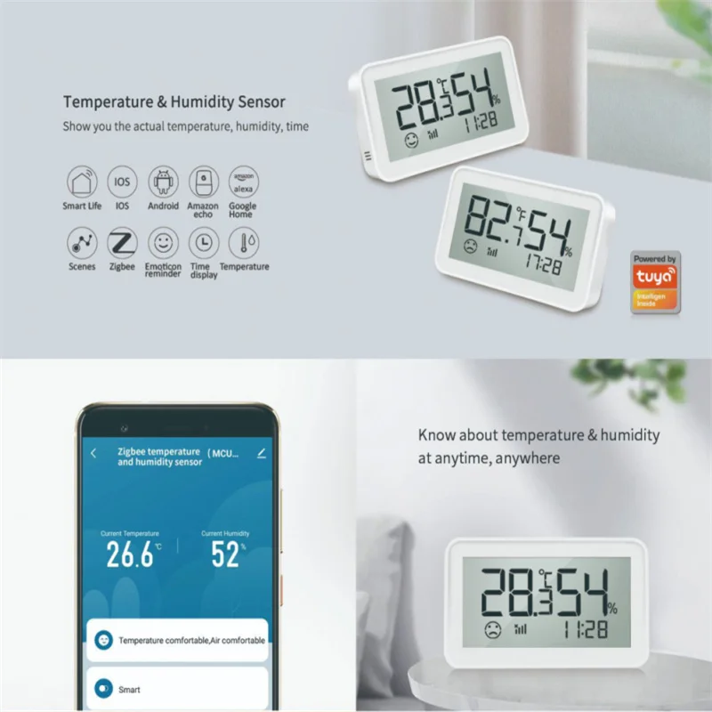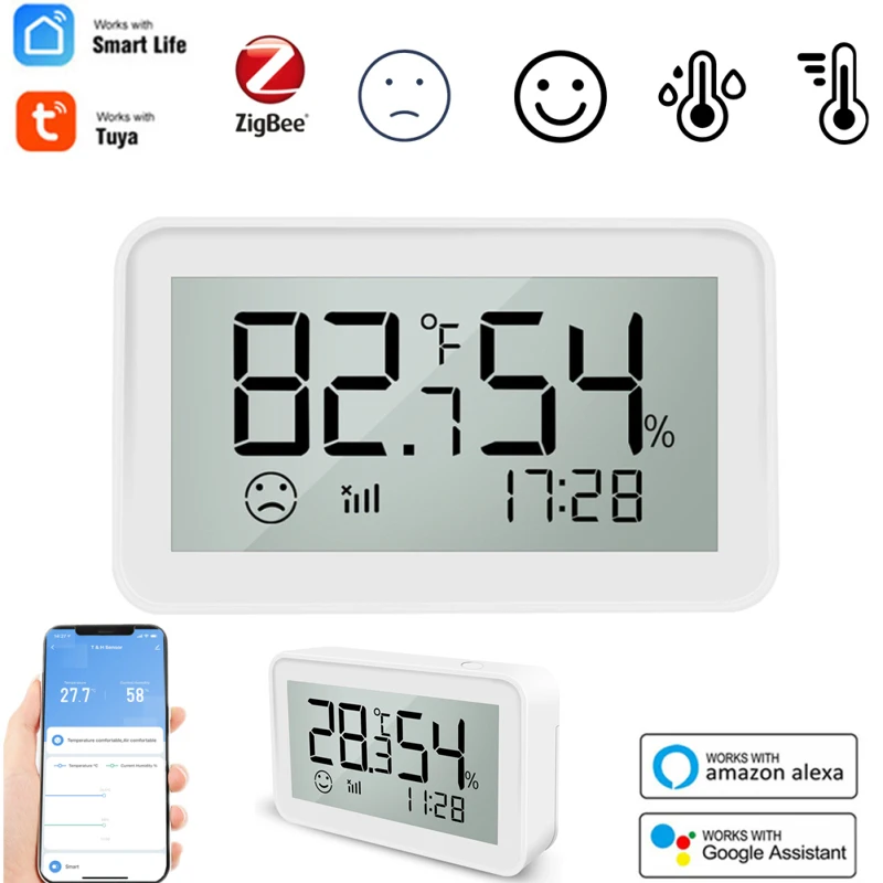 Датчик температуры и влажности Tuya ZigBee, умный дом со светодиодным экраном, работает с Google Assistant и Tuya Zigbee Hub Alice