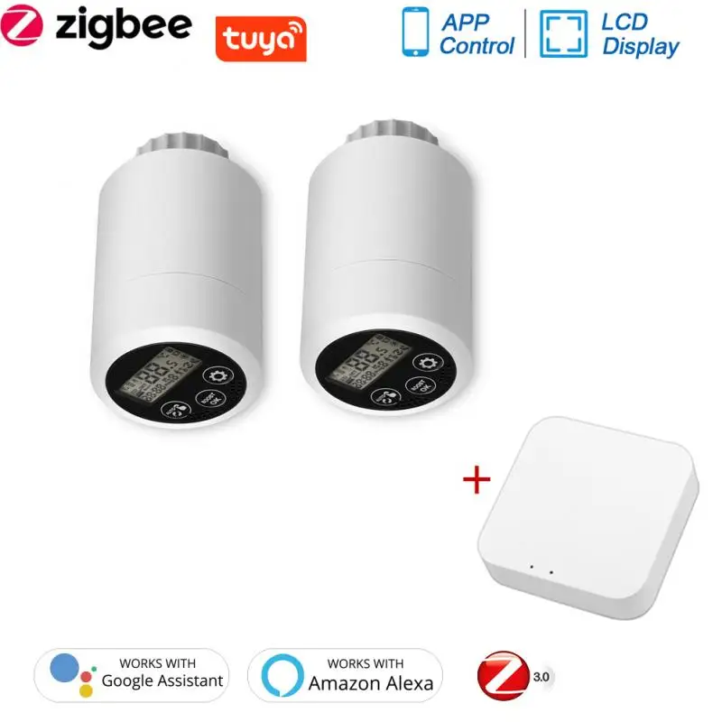 Термостат радиатора Smart Tuya ZigBee: термостат радиатора с ЖК-цифровым дисплеем и простой новой ручкой для простых настроек. Он разработан с двумя секциями аккумуляторов AA, который является специальным клапаном, использующим совместно с нагревательным радиатором для энергосберегающих. Искусственно устанавливаемая температура в помещении, в основном используется в системе напольного отопления для контроля закрытия и открытия трубы.