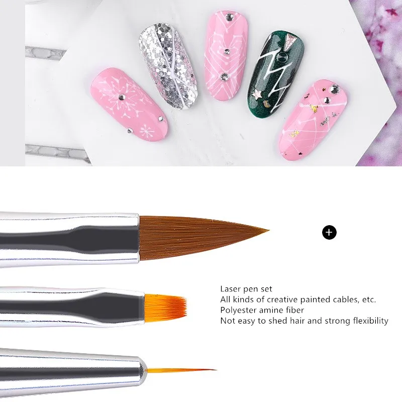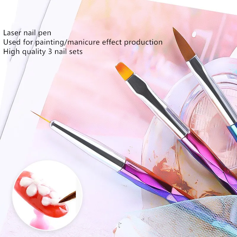 Набор кистей для маникюра, 3 шт.компл., лазерный дизайн декорация д...