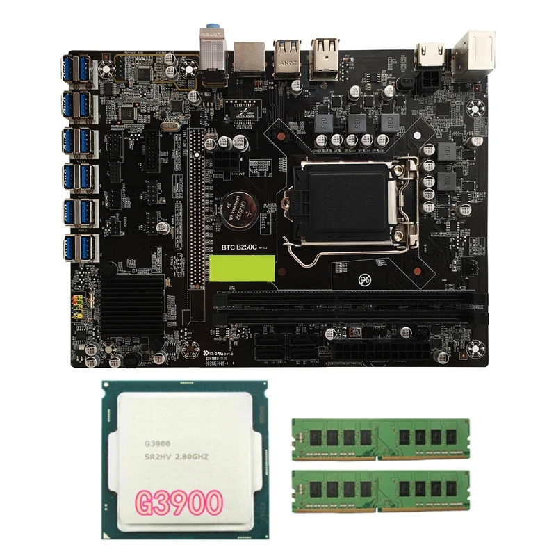 Материнская плата B250C для майнера, графическая плата 12 USB 3,0 к PCI-E, ЦП G3900, поддержка памяти LGA 1151 DDR4 для майнинга, B36A